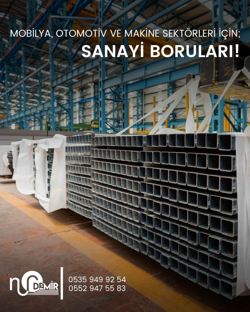 Farklı boyutlarda müşteri taleplerine uygun sanayi boruları, çok farklı seçenekler içinde kullanıma sahiptir. Sanayi boruları başta mobilya, çelik eşya ve dekorasyon olmak üzere otomotiv, makine sektörleriyle birlikte sanayinin ve üretimin birçok alanında kullanılmaktadır.